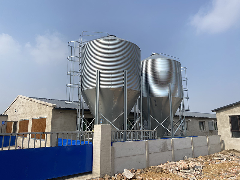40°料塔倉頂為料塔提供了更大的強(qiáng)度和容量,還可防雨水進(jìn)入料倉。料塔底部漏斗形狀設(shè)計(jì),為飼料輸送提供條件。